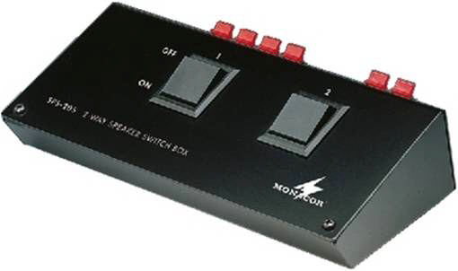 Caja de conmutación para conectar dos pares de recintos (4-8 Ω) a una salida estéreo de un amplificador. Potencia 200 WMAX, dimensiones: 176x50x100 mm.